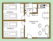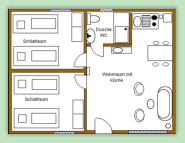 Ferienhäuser - AusstattungUnsere Häuser sind ausgestattet mit● zwei Schlafräumen (je zwei Schlafgelegenheiten)● einem Wohnraum (Couchgarnitur, TV...)● eine Kochgelegenheit (Kühlschrank, zwei Kochplatten, Spüle, Geschirr, Kaffeemaschine...)● einem Bad (Dusche & WC)● KOSTENLOSEM W-LAN Zugang● Kinderbett/Kinderstuhl auf Wunsch